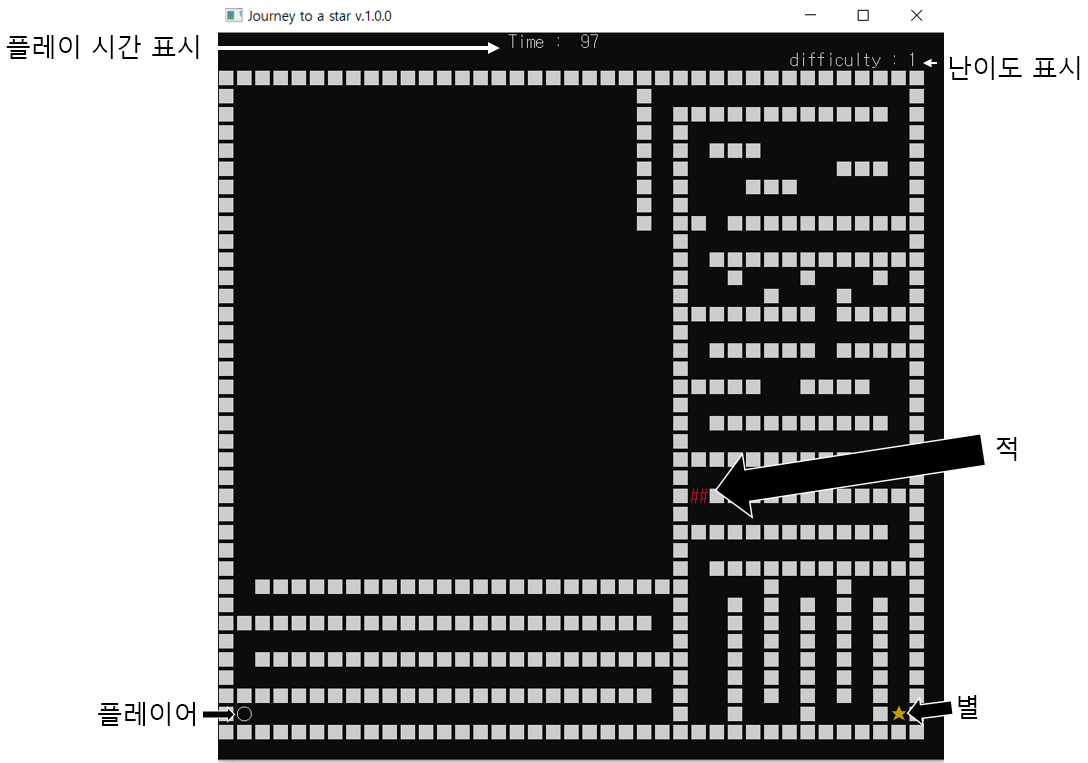 적에게 잡히지 않고 최대한 빠른시간안에 별에 도달하면 됩니다.