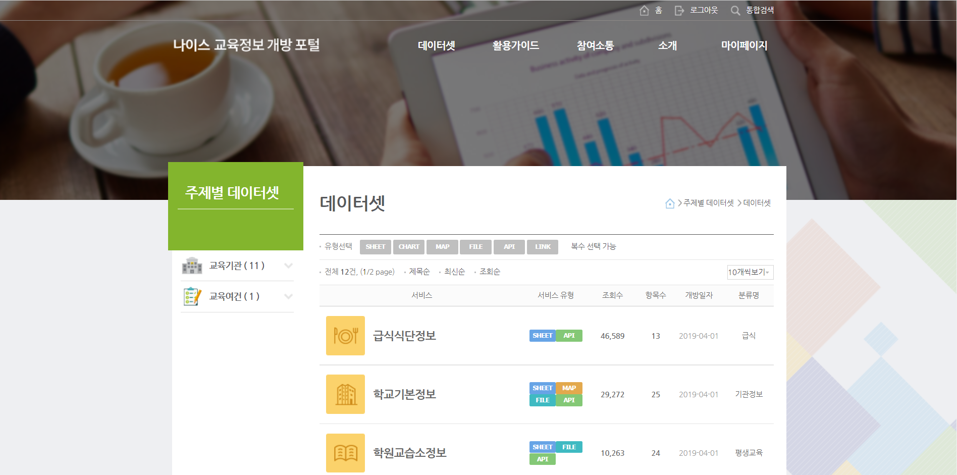 나이스 교육정보 개방 포털(https://open.neis.go.kr/ )에서 open api 서비스를 제공한다.
