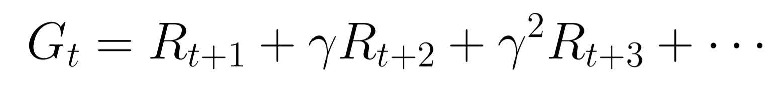 감가율은 시간에 따른 보상의 가치를 나타내기 위해 미래의 보상에 곱하는 요소입니다. 감가율의 필요성은 무한합을 방지할 수 있습니다. 밑의 식을 살펴보면 반환 값이 감가율에 대한 등비급수의 형태를 가지는데 감가율이 없다면 이 급수는 발산하게 되어 계산이 무의미해집니다. 또 감가율은 미래의 가치를 낮게 평가함으로써 미래의 불투명도를 상징합니다.